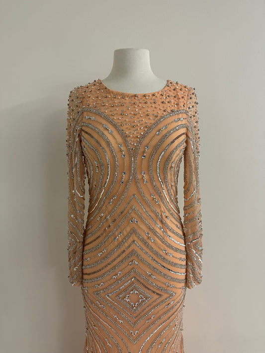 MADE TO ORDER ONLY: 'ZARI BEIGE' EMBELLISHED DRAPE MAXI DRESS (3 weeks wait)