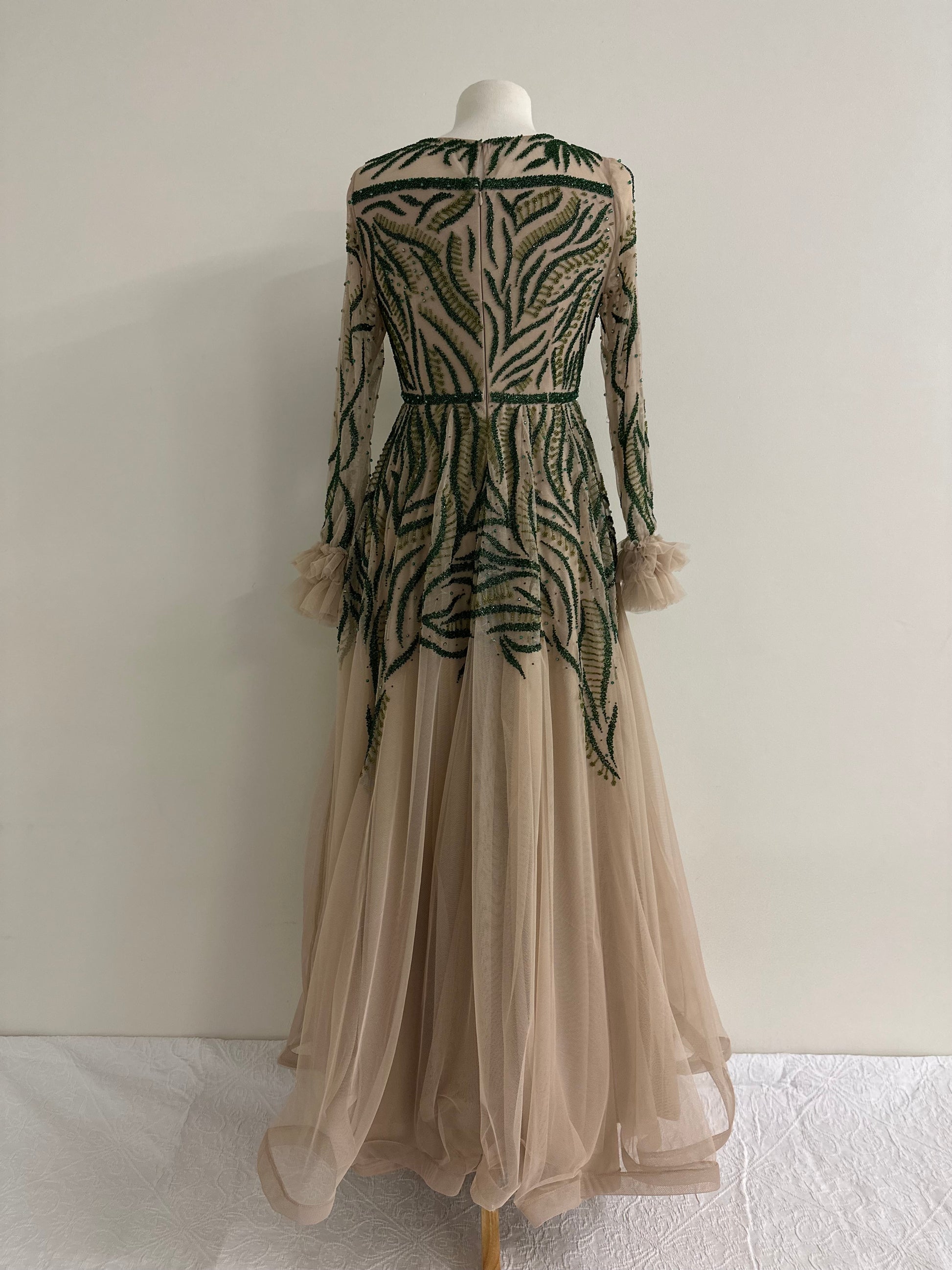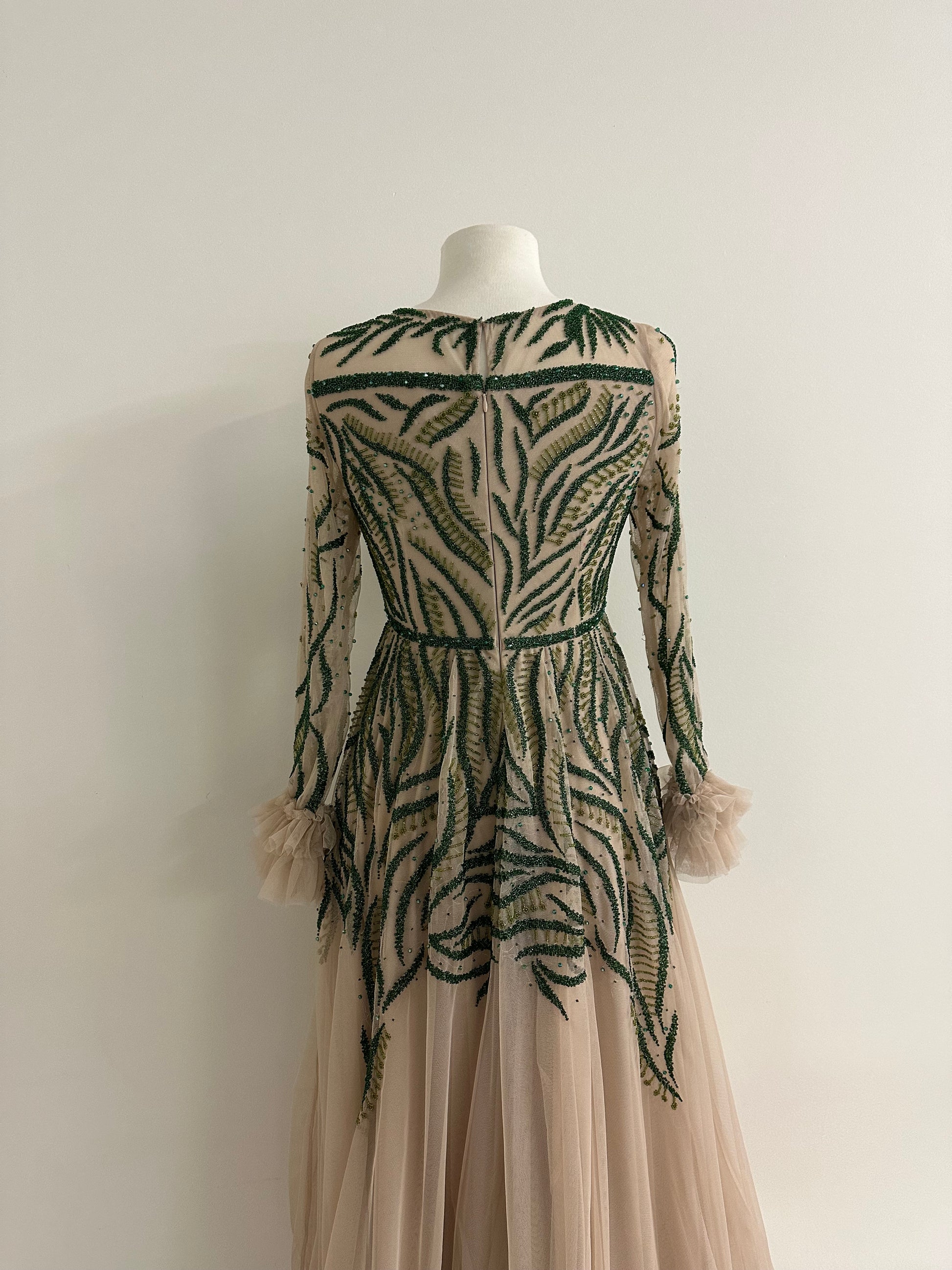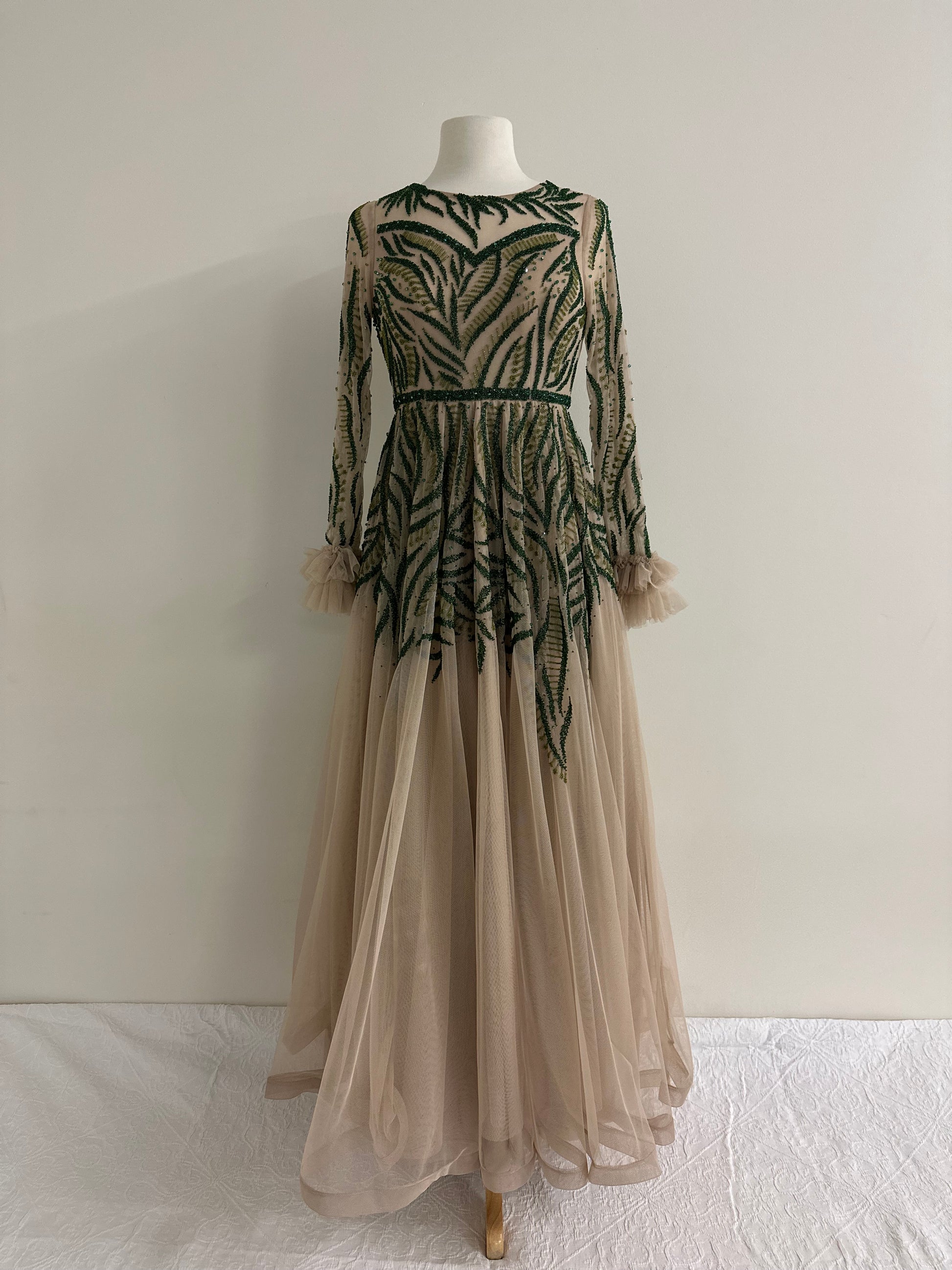 BEIGE EMERALD GREEN BALLGOWN